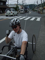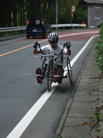 ハンドサイクルブートキャンプヒルクライム編、たいへん楽しく参加させていただきました。諸事情により午後から参加いたしましたが、今回のコースの檜原町やその先は、都内といえども自然豊かな山の中にあり、木陰と山の空気でぐっと温度も低くなりますので、ヒルクライムの練習にはもってこいでした。 今回は、頭や首、上体がフラつかないように安定して漕ぎ続けることを課題にしていましたので、ネックレストに首を押し付けるように安定させながら漕ぎ続けました。これが思った以上に功を奏して、結局一度も止まらずに折り返し地点まで上り続けられました。これはかなり自信になりました。 帰りは上ってきた道を下っていくのですが、上りと比べて手応えが薄く、自然と『また上りたい』という気持ちになっていました。そこでヒルクライマーの歌をひとつ・・・。 上り坂己と対話 根競べ そこが花道 ヒルクライマー 最後はハンドサイクルに置き換えてもよいです。ご清聴ありがとうございました。