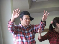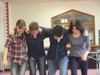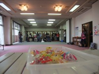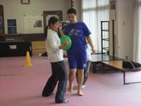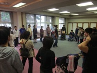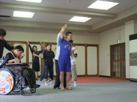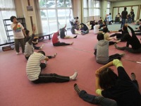 まずはホールに集合して、みんなで準備体操&ストレッチングから。