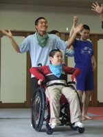 車いすのお友達だって、パートナーにお兄さん、お姉さんと一緒に楽しみます。